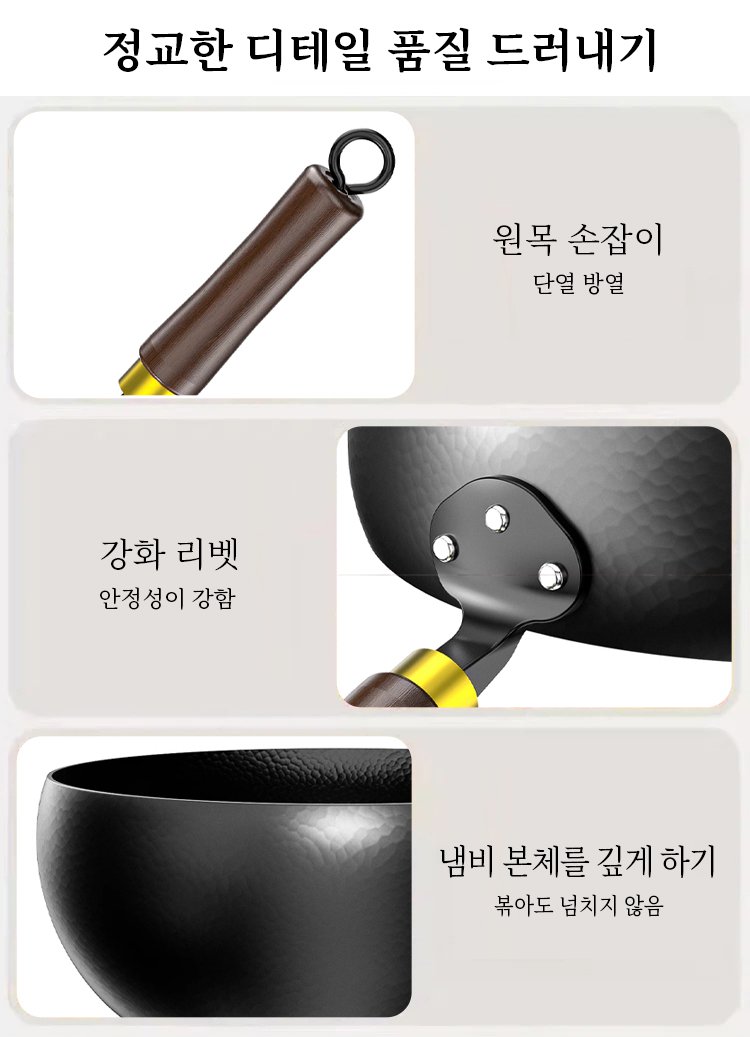 【철분 보충 순수 철】코팅 없는 논스틱 깊은 냄비