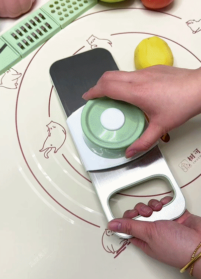주방에서 슬라이서 사용하는 모습